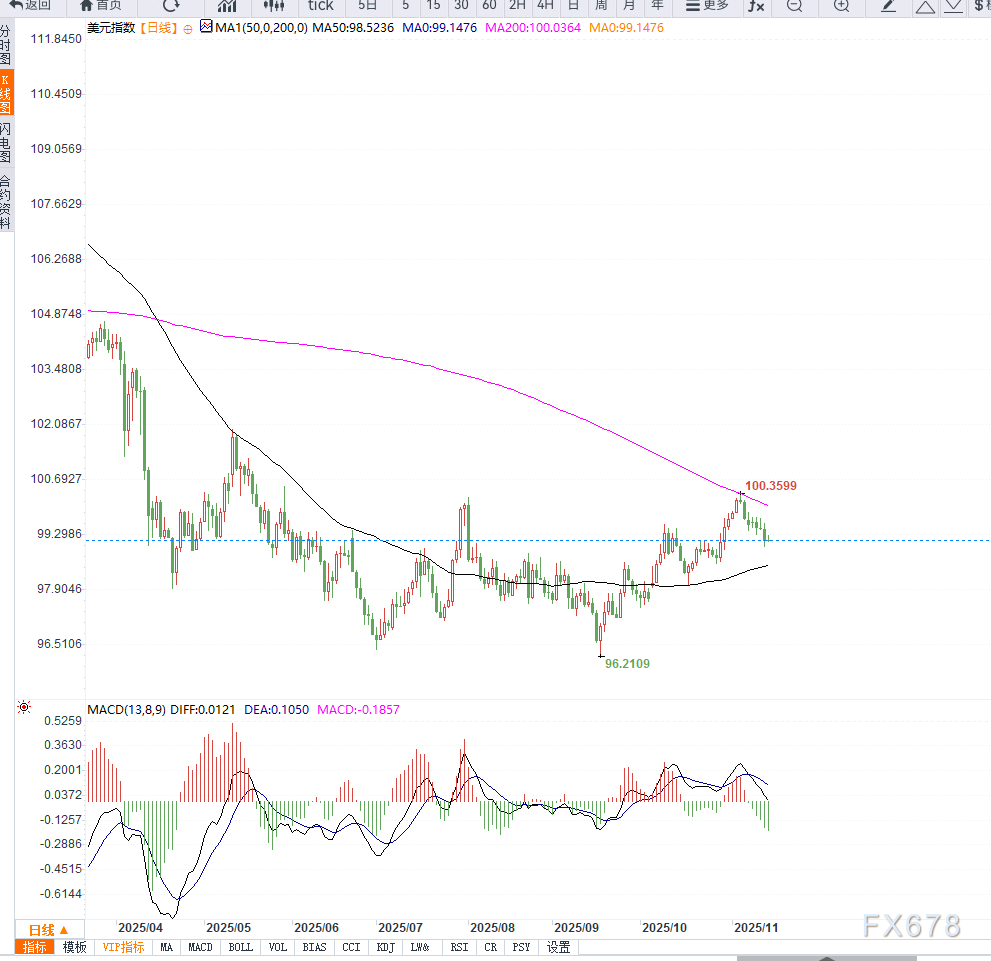 汇通财经APP讯——美国政府正式重启后,美元指数(DXY)在周五亚洲时段维持于99.15附近震荡。尽管开盘表现略显坚