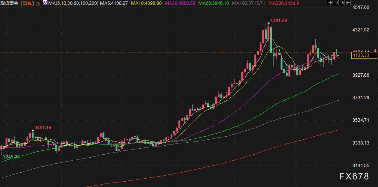 汇通财经APP讯——周三(北京时间11月26日)亚市早盘,现货黄金交投于4133.60美元/盎司附近,金价周二持稳,
